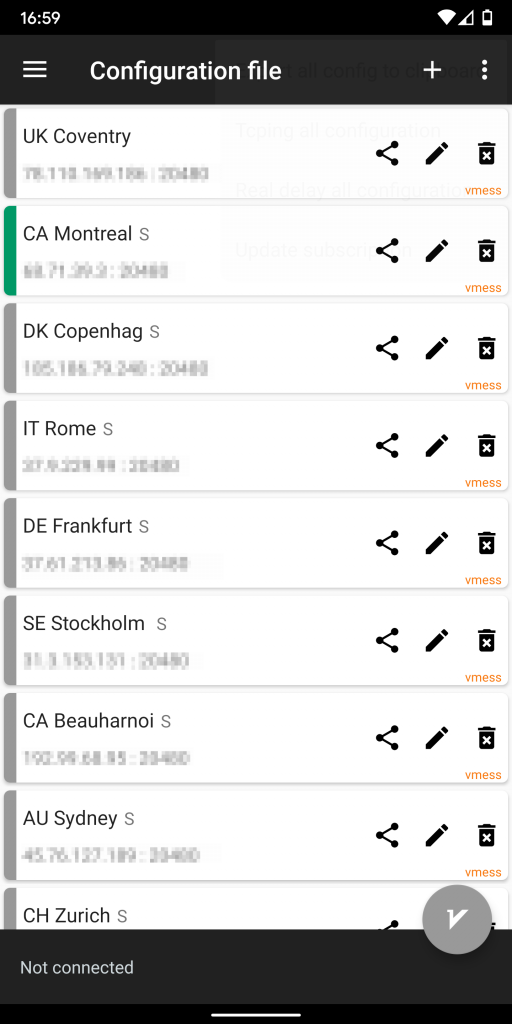 The app does not update the server list automatically, unless you configure that separately. You’ll have to open the 3-dot menu and choose Update current group subscription at least once a day.